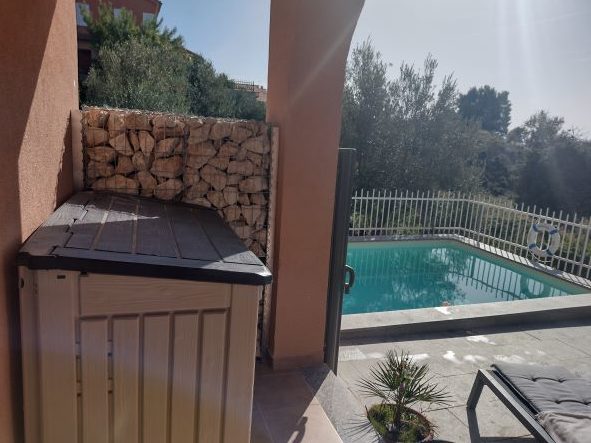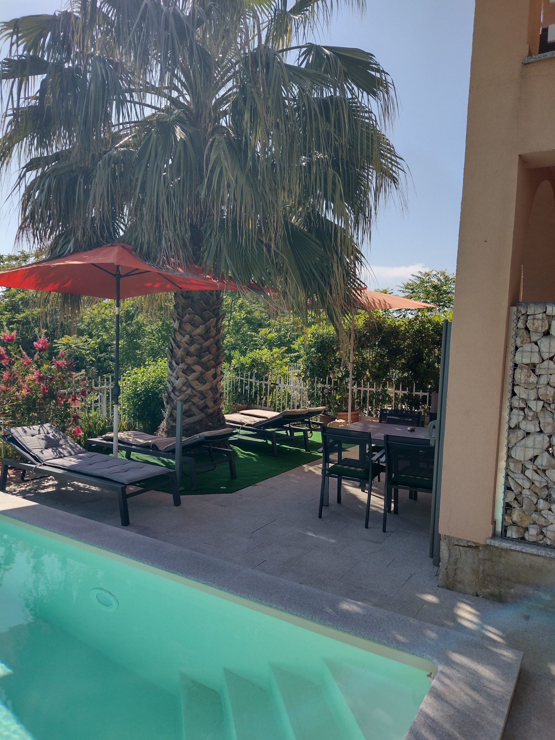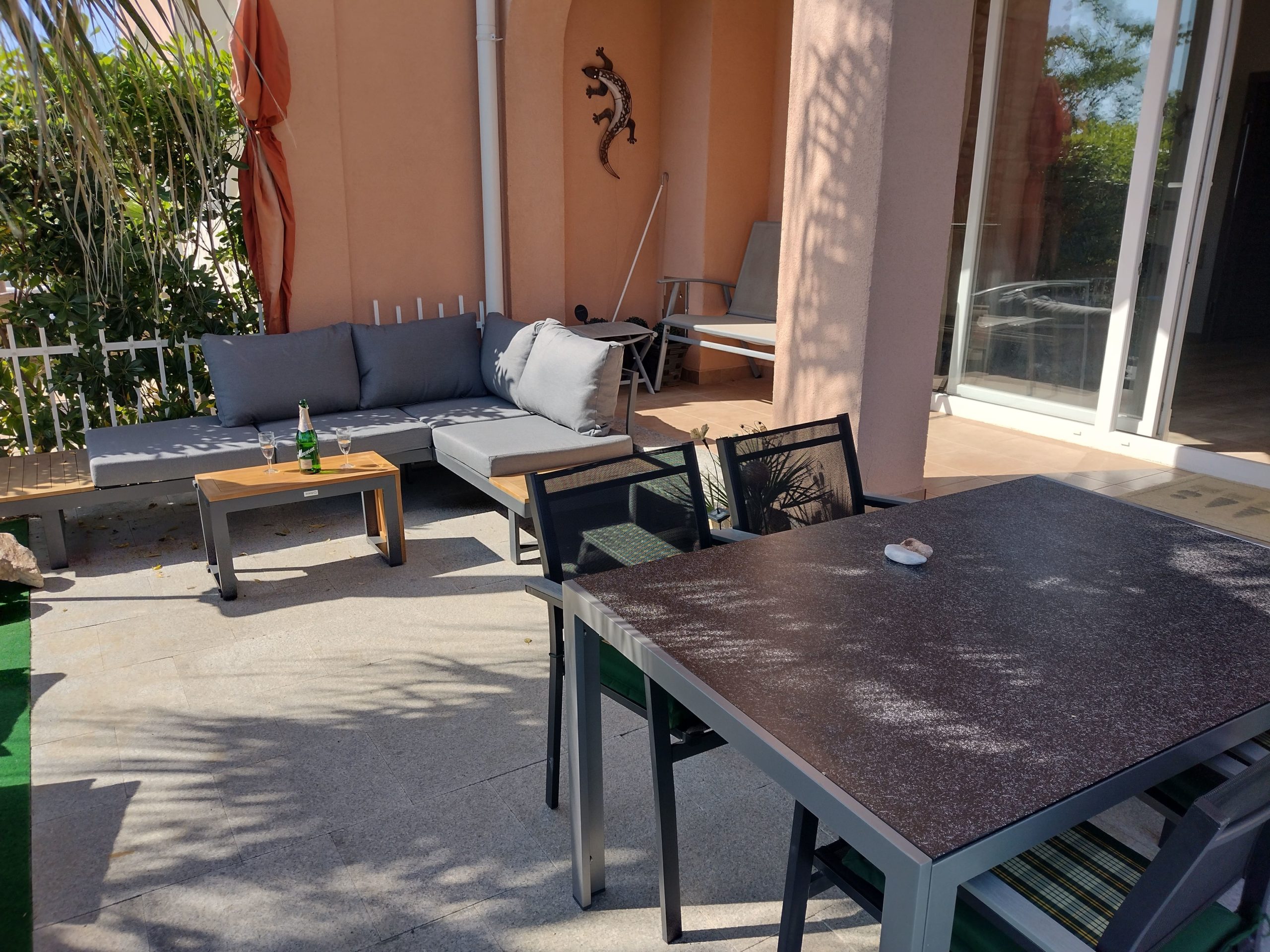 Vor dem Haus befindet sich ein eigener Parkplatz. Das Objekt, ist im „mediterranen Stil“ eingerichtet und komplett neu. Die Schlafräume und das Wohnzimmer haben jeweils eigene Klimaanlagen (warm/ kalt).
